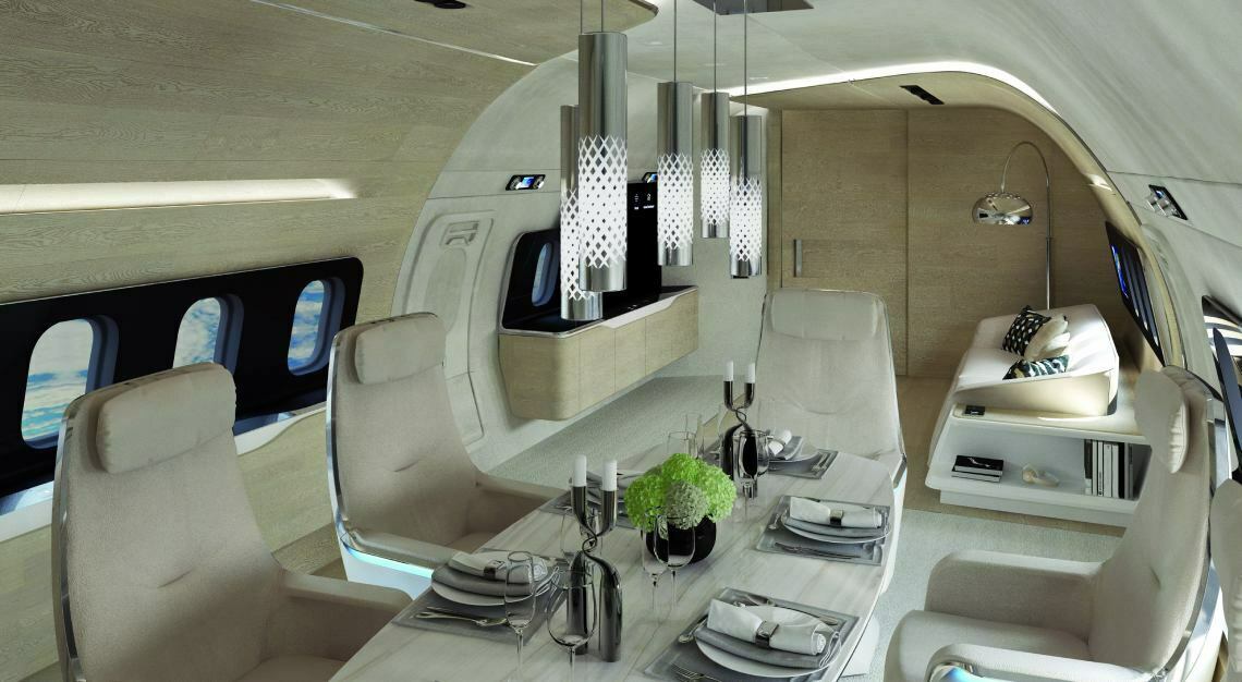 Having a yacht designer create a private-jet interior sounds like a risky proposition. But the two disciplines have more in common than shared luxury, namely a lack of affinity for sharp corners and weighty finishes. Designer Alessandro Massari lent his hand to a Boeing interior for the first time. The design team opted for a cozy but clean look, employing light colors and simple curves. The 737 MAX 7’s cabin volume allowed for a large common area, an owner’s office, sleeping quarters and an en suite with full-height shower. Also included is a pop-up rolling monitor for entertainment and business, to free up space. Glass edges on armrests allow cabin control at a touch.