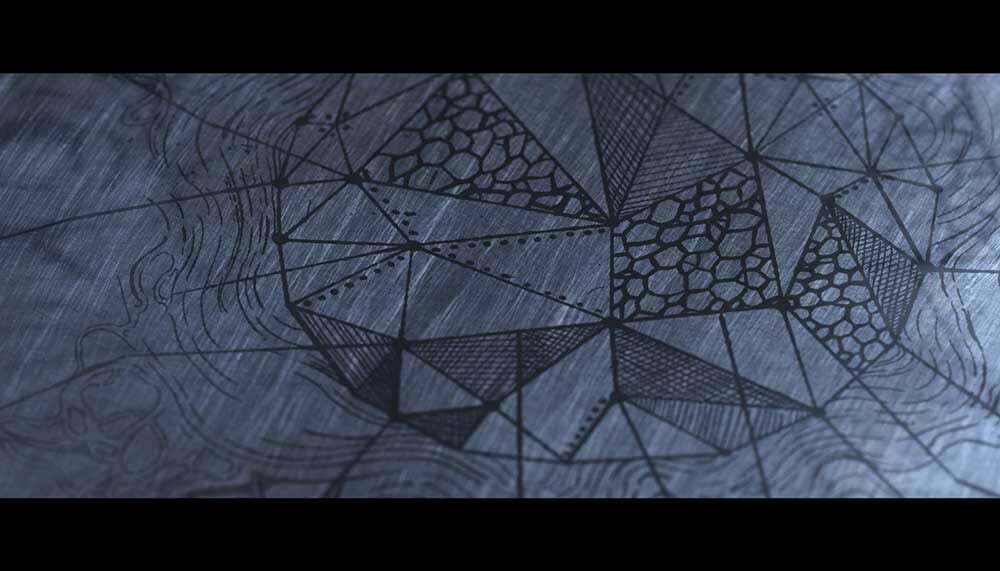 The illustrations on each panel are shaded using a cross-hatching technique, something that Yu says is a common technique in metal etching and coincidentally, is visually similar to the wire mesh spindle grille on the Lexus LS.