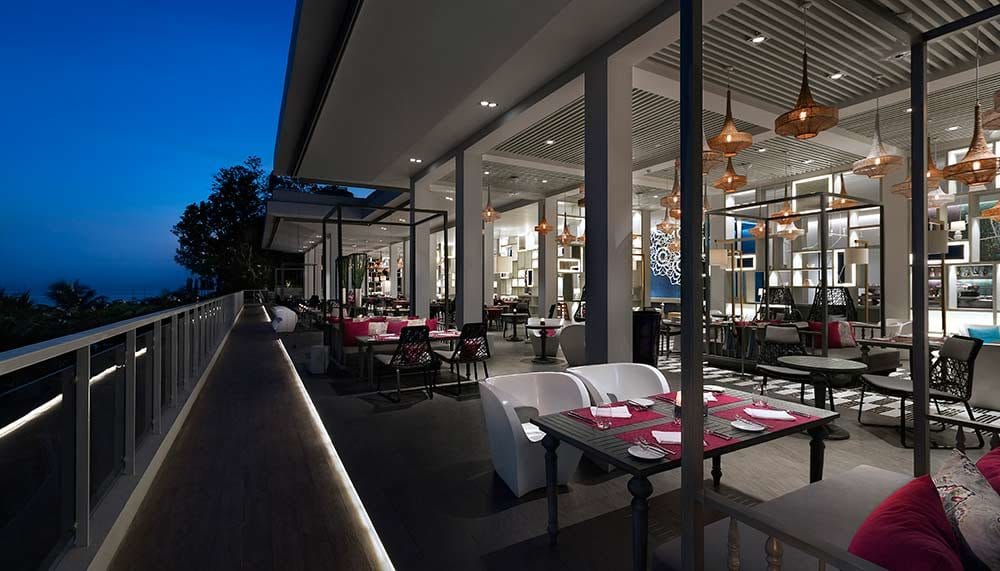 The bar, Reflection, is romantic and sexy with a reflective azure pool and sunken lounging pods. While you’re admiring the sunset, try one of the signature cocktails prepared exclusively for the luxury resort — Rumble and Lady Nai Harn, using Chalong Bay Rum, an indigenous spirit to Phuket made from organically grown sugar cane. There is also an extensive wine especially created for the resort by wine critic James Suckling.