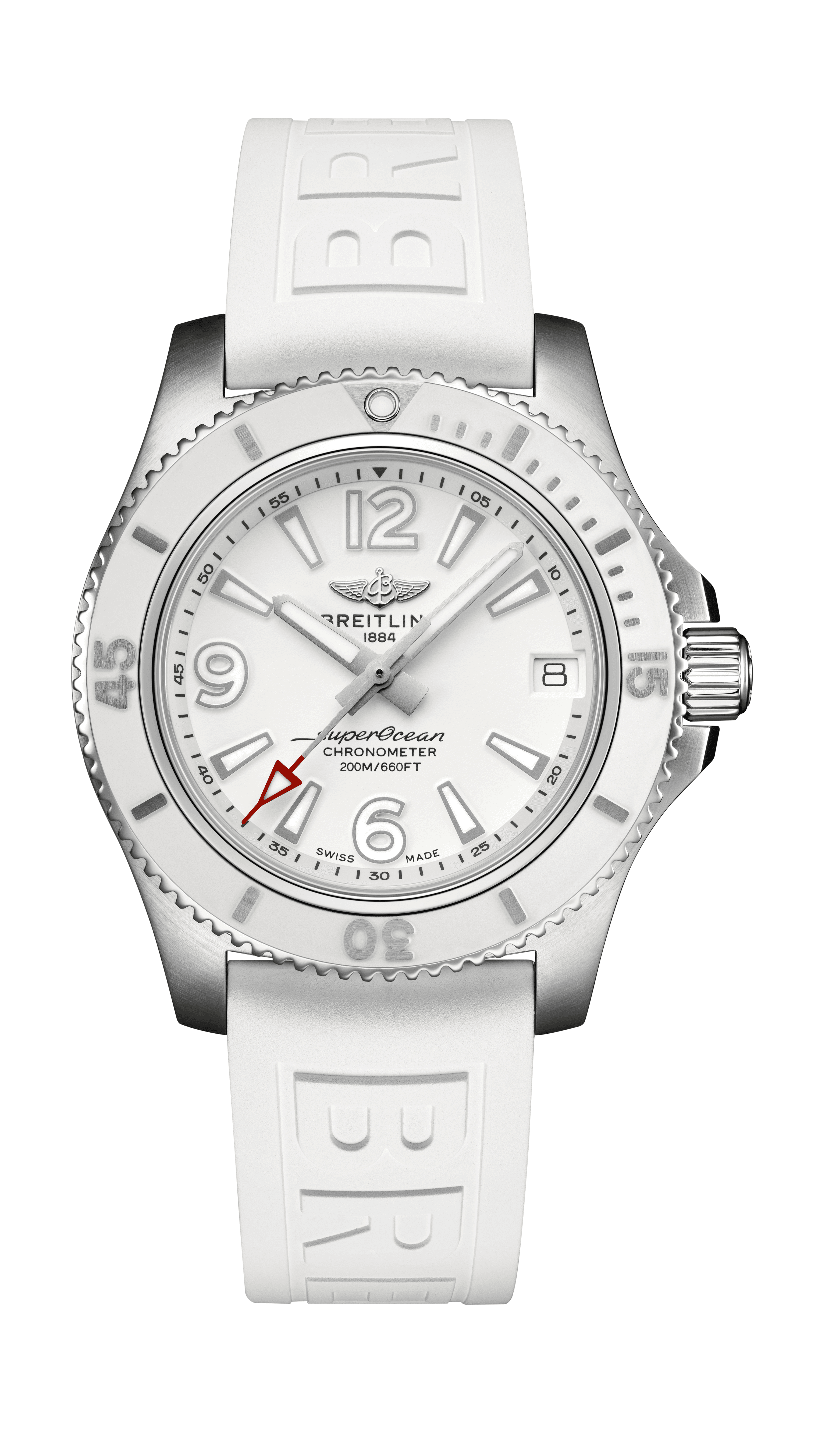 - 03 Superocean 36 with white dial and white Diver Pro II rubber strap ดีไซน์สปอร์ต คล่องตัวด้วยสายยาง ที่มาพร้อมสีขาวสุดหรู