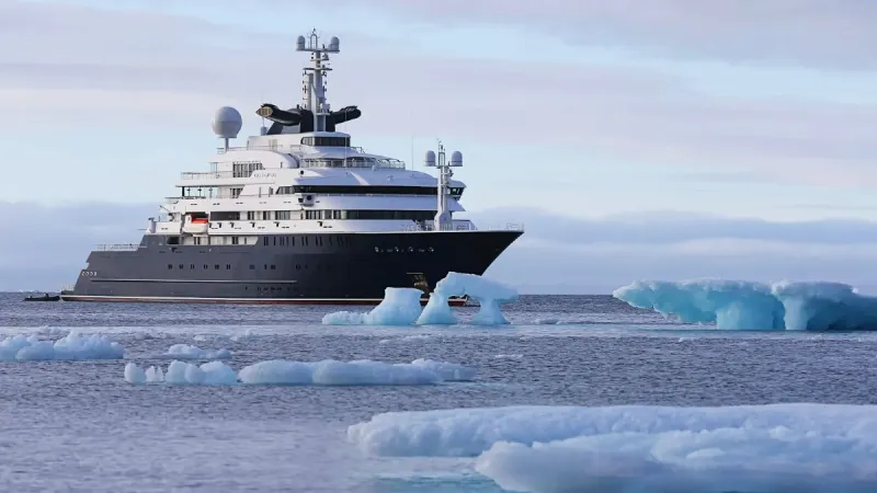 Octopus is one of the first and largest examples of an all-out exploration vessel. It’s equipped with highly sophisticated technology to support scientific research voyages that require months at sea, including an integrated dock for both the principal 66-foot tender and two submersibles, one of which is remotely controlled for reaching greater depths. Designed by Espen Øino, it also has a professional music studio, a cinema, two helipads, and a hanger aft.