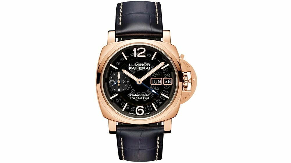 Panerai was born as a tool-watch brand creating utilitarian timepieces for the Italian Royal Navy, though since the ’90s it has largely been known for sporty commercial watches made famous by action hero Sylvester Stallone in the movie Daylight. Beneath that umbrella, the debut of the caliber P.4100 movement in 2021, seen in both Goldtech and Platinumtech models, marked the brand’s first in-house perpetual calendar.
