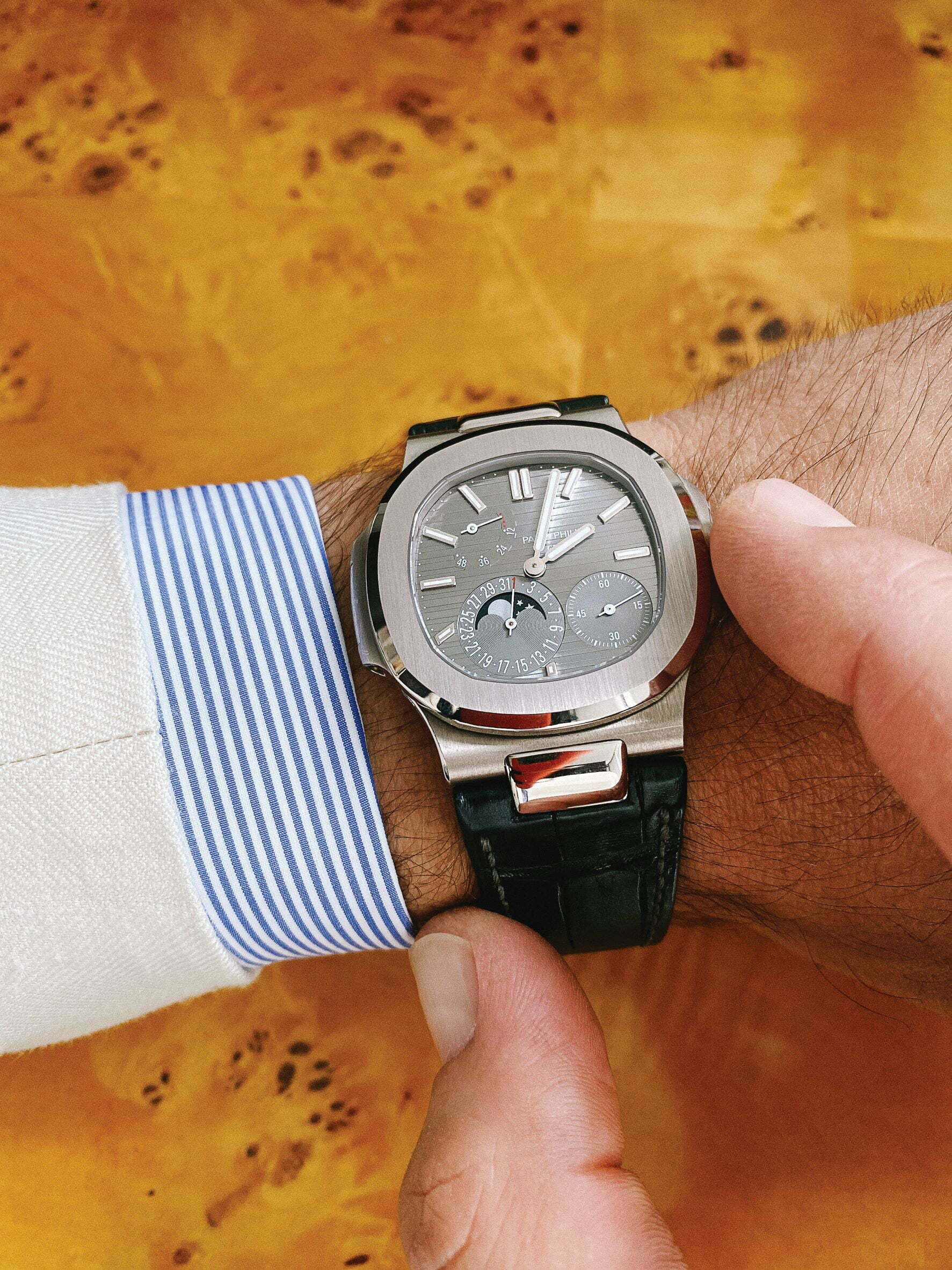 Patek Philippe 5712G“สิ่งนี้เป็นของขวัญให้ฉันโดยภรรยาของฉันเนื่องในวันเกิดครบรอบ 40 ปีของฉัน เธอรู้ว่าฉันได้ดูมันเป็นเวลานานและไม่ง่ายเลยที่จะเข้าสู่ตลาดนาฬิกาได้ เพราะ 5712G เป็นที่ต้องการอย่างมาก มันเป็นนาฬิกาที่สวยงามและไม่เหมือนใคร เธอสามารถติดต่อเพื่อนที่ดีของเรา Ruediger Albers ที่ Wempe เพื่อรับมัน ฉันมีความสัมพันธ์ที่ยาวนานกับ Wempe ตั้งแต่ฉันเติบโตในเยอรมนี ซึ่งเป็นการแกะนาฬิกาที่บูติกในนิวยอร์กนั้นมีความพิเศษและสำคัญอย่างมาก