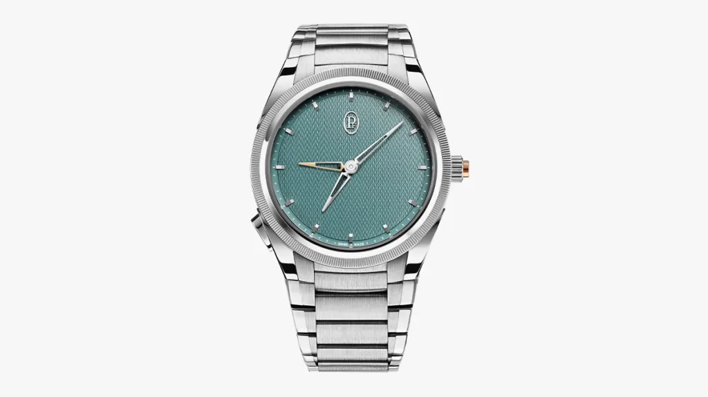 In 2022, Parmigiani Fleurier launched a groundbreaking new GMT design stemming from the mind of Guido Terreni, the brand’s then-newly appointed CEO. In place of a system using a fourth GMT hand or a rotating hour disc, the Parmigiani Fleurier Tonda PF GMT Rattrapante uses dual hour hands, one superimposed over the second. Upon actuation of a pusher on the left case flank, one hand jumps in single-hour increments, leaving the second hand in place. This clever system allows for the rapid adjustment to a second time zone, after which the hand can be returned to its superimposed position via the push of a button embedded into the watch’s crown. Sleek and simple.