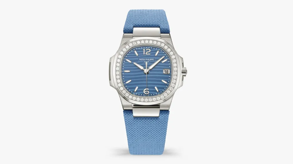 In 2023, Patek introduced a rose gold ladies’ version of its beloved Nautilus design, with a diamond-set bezel, a stunningly lacquered purple dial, and a handy date aperture. Now, it’s following up that take with a subtler—though certainly no less finely crafted—version in white gold and pale blue.