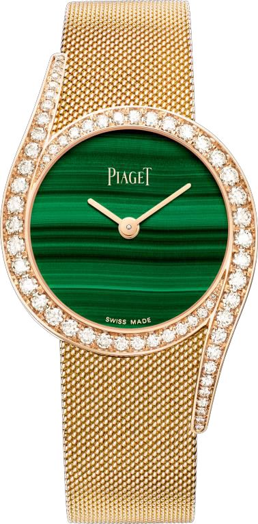 32 mm. Case in 18K rose gold set with 63 brilliant-cut diamonds (approx. 1.66 cts). Natural malachite dial. Milanese mesh bracelet in 18K rose gold. 501P1 Manufacture automatic mechanical movement.