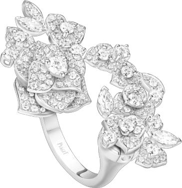 Piaget Rose ring in rhodium finish 18K white gold set with 75 brilliant-cut diamonds