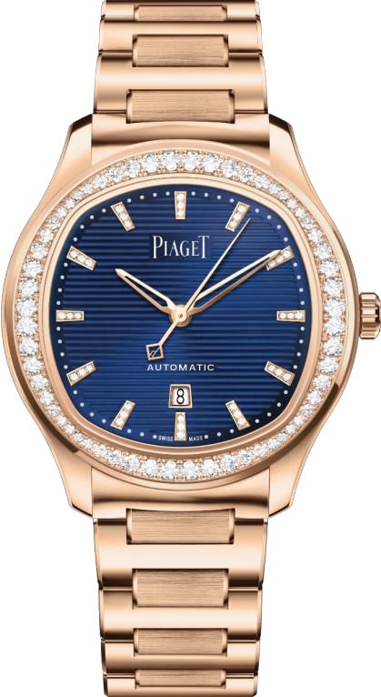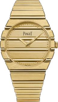 38mm. 18K yellow gold case, dial and bracelet. Piaget signature alternation of gadroons and satin finished gold elements. Full integration of the bracelet into the case. 18K yellow gold folding buckle. Sapphire crystal case back. 1200P1 Manufacture automatic movement with a 18K yellow gold oscillating weight.