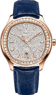 36 mm. Case in 18K rose gold set with 60 brilliant-cut diamonds (approx.0.97 ct). Blue dial with hour-markers in 18K rose gold set with 36 brilliant-cut diamonds