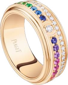 Possession ring in 18K rose gold set with 48 brilliant-cut diamonds (approx. 0.35 ct), 7 sapphires (approx. 0.18 ct), 6 yellow sapphires (approx. 0.16 ct), 6 green tsavorites (approx. 0.12 ct), 4 orange sapphires (approx. 0.10 ct), 4 pink sapphires (approx. 0.10 ct), 4 purple sapphires (approx. 0.10 ct), 2 pink rubies (approx. 0.05 ct) and a Possession-set brilliant-cut diamond (approx. 0.03 ct).