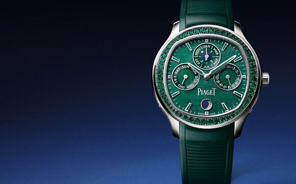 For a bolder look, Piaget is adding three large bangles that still maintain their clasp-free signature flexibility, a technical marvel in itself. The first one features malachite alluring green cabochons that contrast so vividly with the rose gold. The other two bangles – in rose and white gold – feature fully paved cabochon that catch the light. The white gold bangle is spotted with diamonds on the bracelet for even more shine! These three models feature four turning paved bands.