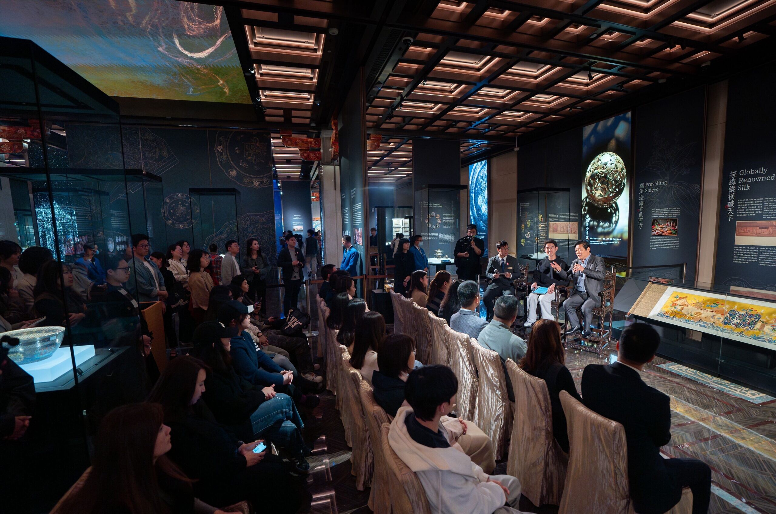 As a world-class cultural tourism landmark, POLY MGM MUSEUM is dedicated to passing on traditional Chinese culture, highlighting the beauty of intangible cultural heritage, and curating exhibitions with the distinctive art and cultural elements from major countries along the Belt and Road. Since its opening, the POLY MGM MUSEUM has played a crucial role in cultural exchange, fostering the mutual learning of international art treasures, intangible heritage techniques, and cultural stories. Recently, the Museum co-organized a cultural and museum exchange program with Nanjing Yunjin Brocade Museum titled “Yunjin Intangible Cultural Heritage Inheritance and Innovation". Featuring Jian Mingwei, the Director of Nanjing Yunjin Brocade Museum, and Zhou Shuangxi, the national-level inheritor of the Nanjing Yunjin weaving technique, an intangible cultural heritage of mankind, this event encouraged an in-depth discussion on the protection, inheritance, innovation, and contemporary value of Yunjin brocade with nearly 100 participants.