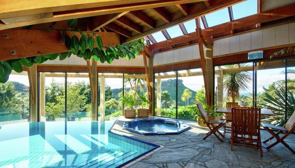 Each lodge room has its own private terrace, while the suites are fully equipped with double granite vanities and jacuzzis. The interiors are kitted with fittings that embody New Zealand’s traditional colonial style – think teak and Tasmanian-oak floors and hand-split Otago schist in the foyers, patios and entrance ways. The property’s ceilings and interior joinery are crafted from recycled rimu and teak. Westhaven Retreat also comprises 12 bathrooms, a library, 24-metre indoor heated swimming pool, hydrotherapy spa and sauna and a capacious lounge where you can bask in unrivalled views of the surrounding wilderness.