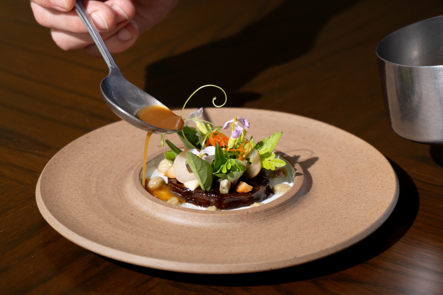 The first course, “King of the Fruits," is paired with Alter Ego de Palmer 2019, a vibrant wine offering lush dark berries, violets, and a silky, approachable texture. Following this, “Mackerel & Makhwaen Pepper" is complemented by Château Palmer 2017, an elegant vintage showcasing red plum, floral lift, and graphite notes. The third course, “Lotus Root & Shrimp Paste," is elevated by Château Palmer 2009, an opulent and seductive wine rich with ripe black fruit, dark chocolate, and exotic spices. Next, “Squid & Blue Cheese" finds its perfect match in Château Palmer 2007, a refined vintage with notes of red berries, dried rose, cedar, and sweet tobacco.