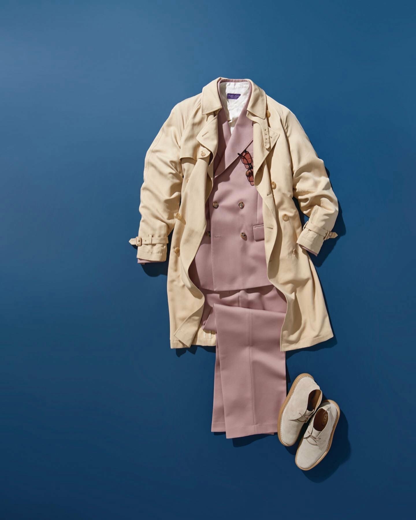 Paired with creamy shades of beige, this double breasted number makes a case for reconsidering purple.