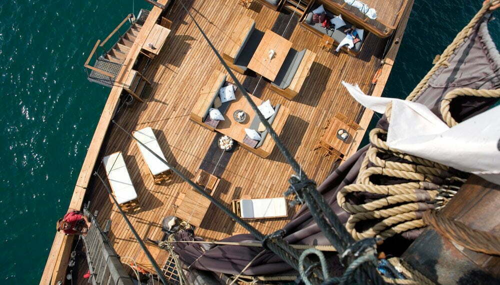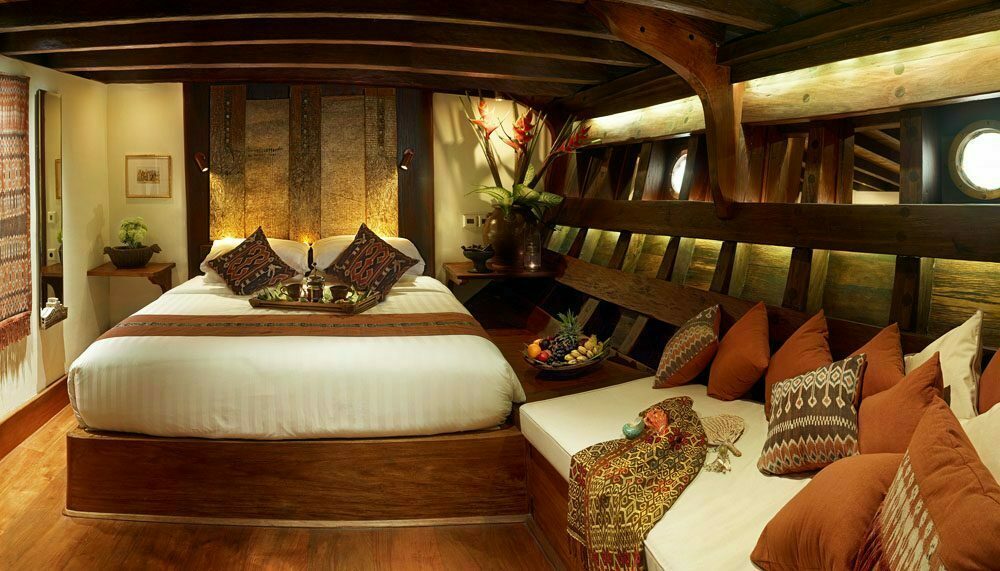 This time, I am on a four-day trip to the Alor, Flores and Lembata islands. We settle in for a 13-hour sail to the island of Lembata. As I scrub the volcanic ash off my arms and face in my stateroom, however, I sense no threat of cabin fever on Si Datu Bua. Seery enlisted a small army of Sulawesi boatbuilders to handcraft every inch of the 40m vessel, from the ironwood panelling sourced from the jungles of Borneo to the bright-red sails. Launched in 2012, the ship includes three suites, a lounge and a dining room, all adorned with Indonesian textiles and artifacts that Seery — a former art historian for the Smithsonian Institution in the US — has collected from around the country.