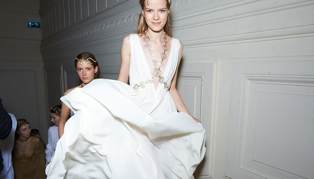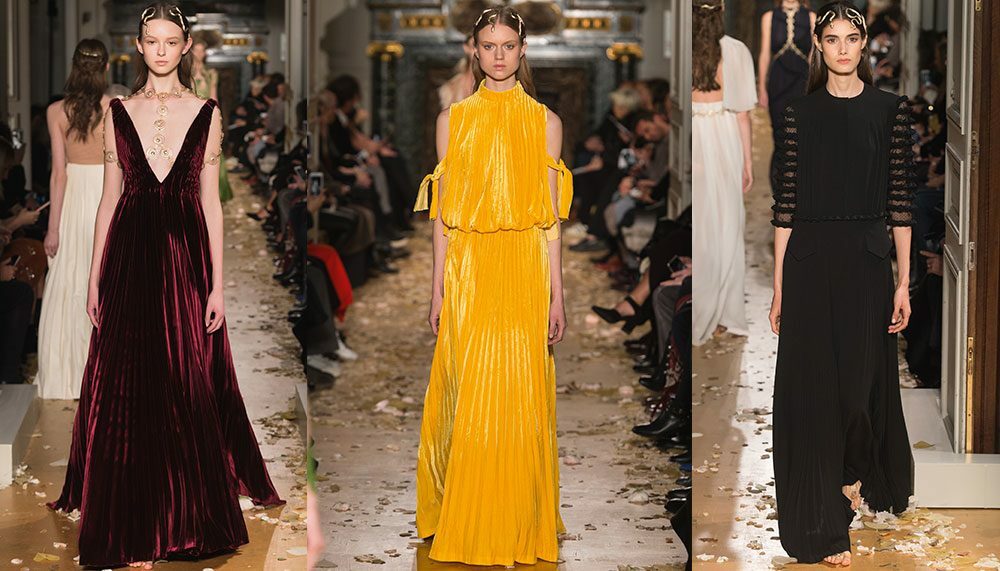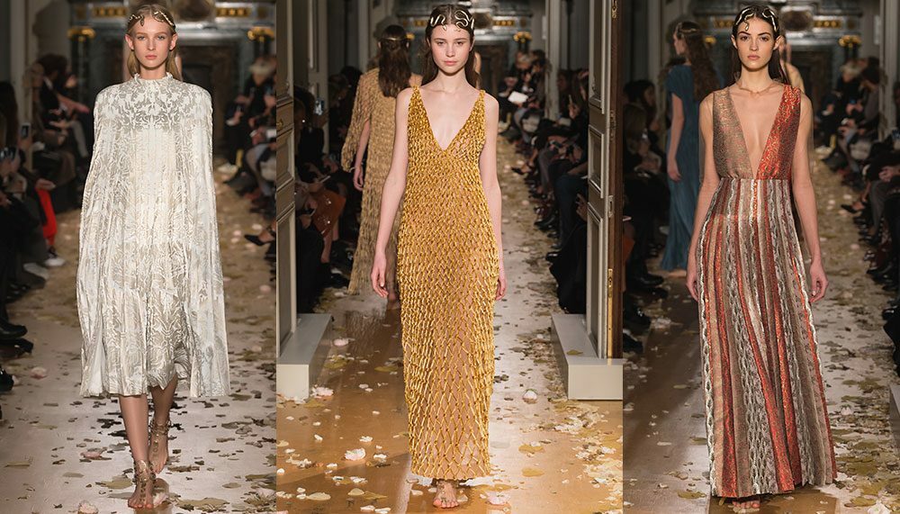 Valentino, on the other hand, drew inspiration from the late Spanish couture designer Mariano Fortuny. Working with his company, the brand recreated Delphos, Fortuny’s floor-grazing dresses in Valentino’s signature hues ranging from moss green to burnt orange. Creative directors Maria Grazia Chiuri and Pierpaolo Piccioli followed up from where they left off during the autumn/winter 2015 haute couture collection, with a new medley of exquisite flowy gowns.