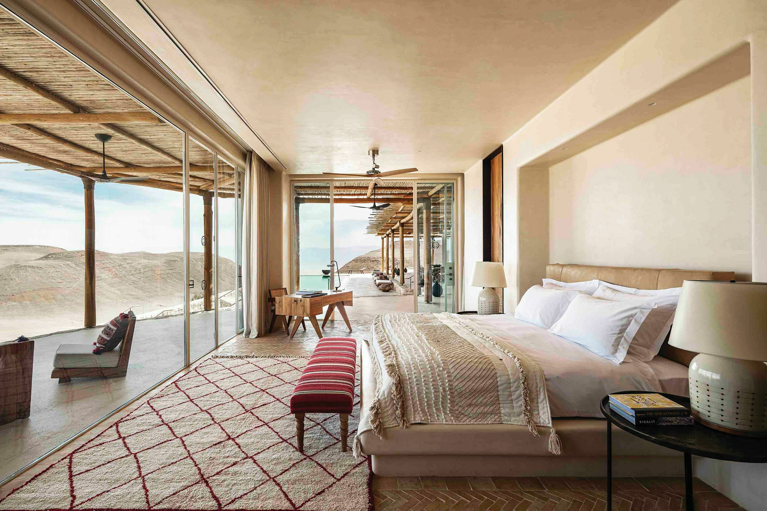 While the hospitality scene in the northern Israeli cities is booming, one of the goals for Six Senses Shaharut was to create something the country didn’t have: a five-star desert resort to rival those you might find in Morocco or the Emirates. the 60 suites and pool villas on the 46-acre property have been crafted using natural stone, wood, copper and reclaimed teak.