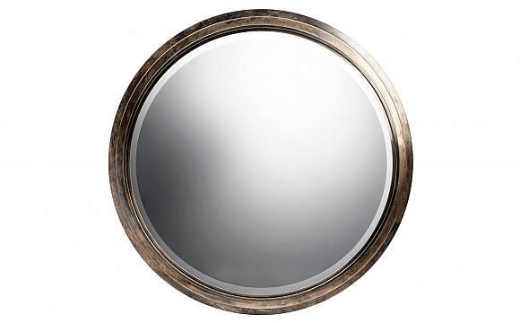 Round wall mirror Material: steel with bevelled glass mirror Dimensions: Ø110cm Finished with a vintage silver...