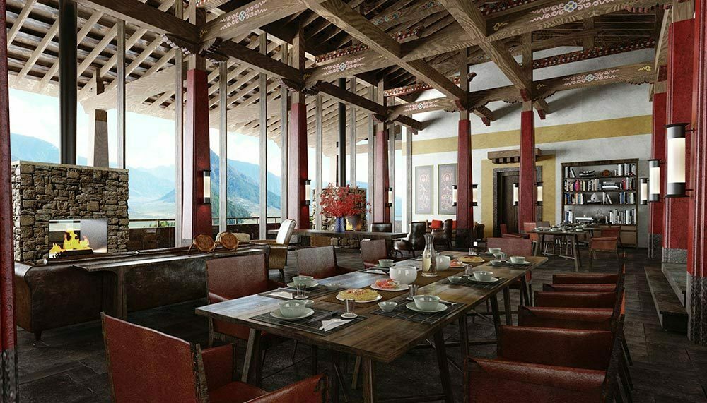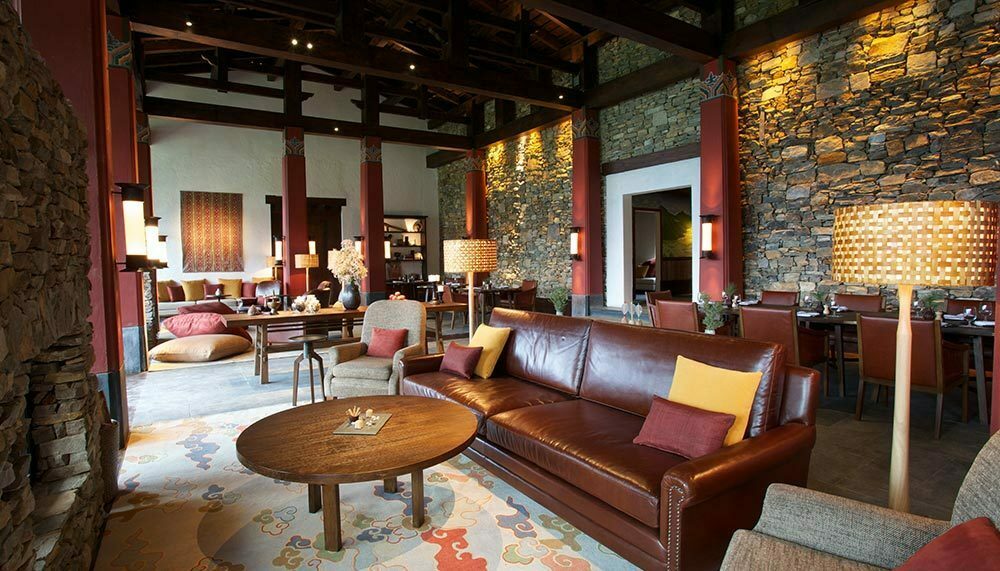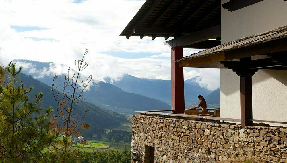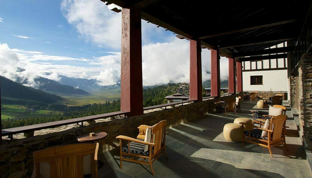 Gangtey Goenpa, on a slope overlooking Bhutan’s Phobjikha Valley, is nothing if not remote. In this tiny kingdom sandwiched between the behemoths of India and China, the monastic lodge is surrounded by little more than grassy valleys, misty pine forests, and the occasional monastery or farmhouse. The country’s dzong temples – with their ochre-hued wooden beams and stacked stone walls – served as inspiration for the lodge, although any sense of austerity ends at the front doors.