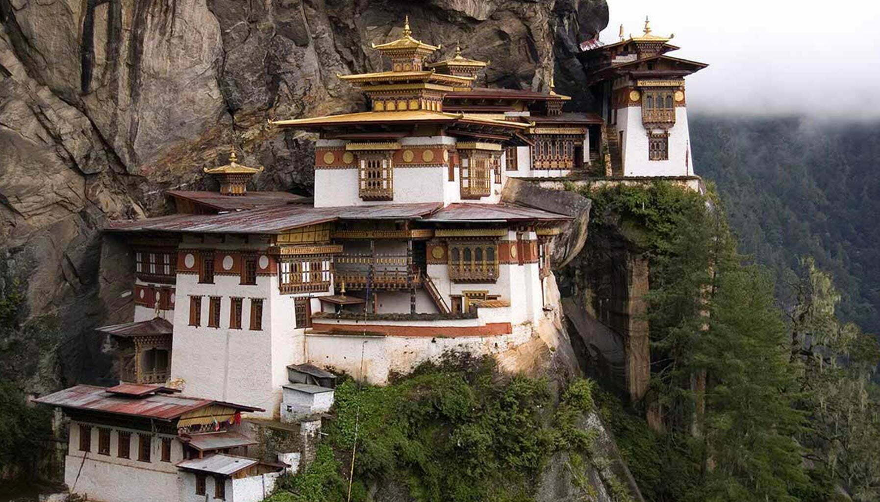 Tempting though the lodge’s luxuries may be, its majestic surroundings are the main draw. Escorted by Namgay, I visit the nearby village of Gangtey’s 17th-century Goenpa monastery, where monks in cascading amber robes perform their prayer ceremonies among hundreds of gilded Buddha statues. A two-hour hike through the valley follows, with Namgay leading me to cloud-covered peaks dotted with rare black-necked cranes in their annual migration to Tibet. In a flat clearing overlooking the valley, he gives me a lesson in Bhutan’s national sport of archery, taunting me with a song and dance – as Bhutanese men are wont to do – when I fail to hit the bull’s-eye.