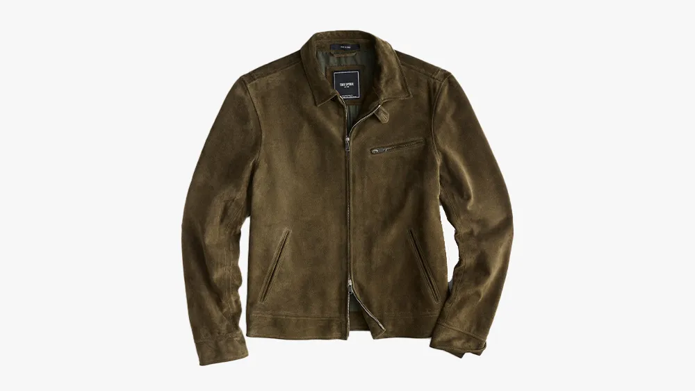The newly introduced Dean is a brother-of-sorts to Snyder’s famous Dylan jacket. While made from the same Italian calf suede that’s distinguished the trucker jacket-inspired Dylan, the Dean takes its style cues from mid-century café racers with a two-way zipper closure and a throat latch.