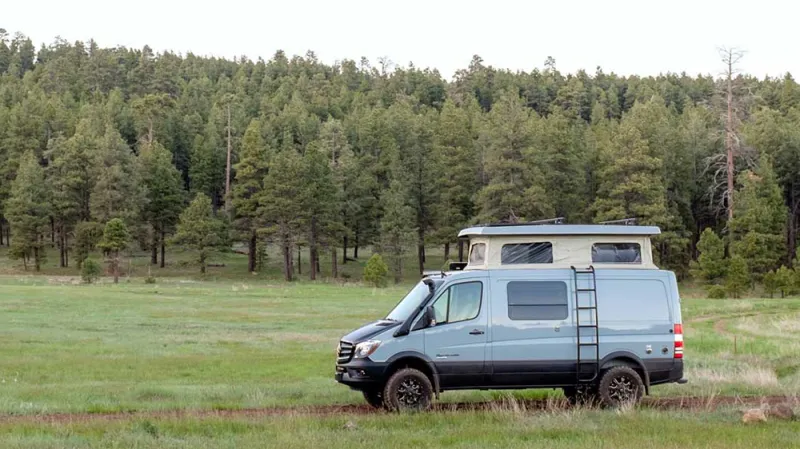 Take one look at Sportsmobile’s Sprinter 4×4 and it’s clear what its designers had in mind: off-roading. Whether you go with the 12- or 14-foot configuration, the Texas outfit’s stripped-down take on Mercedes’s ultra-popular van comes equipped with a 3.0-liter BlueTec V-6 connected to a five-speed automatic transmission and pumps out 188 hp and 325 ft lbs of torque. That should be more than enough to tackle even the toughest terrain. Inside, you’ll find a spacious living area with a full-featured kitchen. If you want even more room, you can also opt for a pop-up sleeping area that’ll make it that much easier to lounge in comfort.