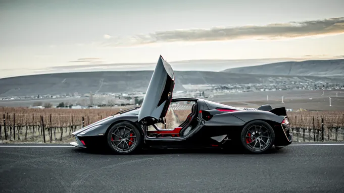 When you pay seven figures for a car, you expect it to be capable of breathtaking feats. The Tuatara most certainly meets those expectations. SSC North America has yet to top 300 mph in independent testing, but it’s come close. The 1,350 hp rocket on wheels was able to reach a one-way top speed of 295 mph during a run at Space Florida’s Launch and Landing Facility in the spring of 2022. Don’t be surprised if the car—which packs a twin-turbocharged 5.9-liter flat-plane crank V-8—cracks the 300 mph mark one day soon. The company has two high-performance variants, the Striker and the Aggressor, in the works.