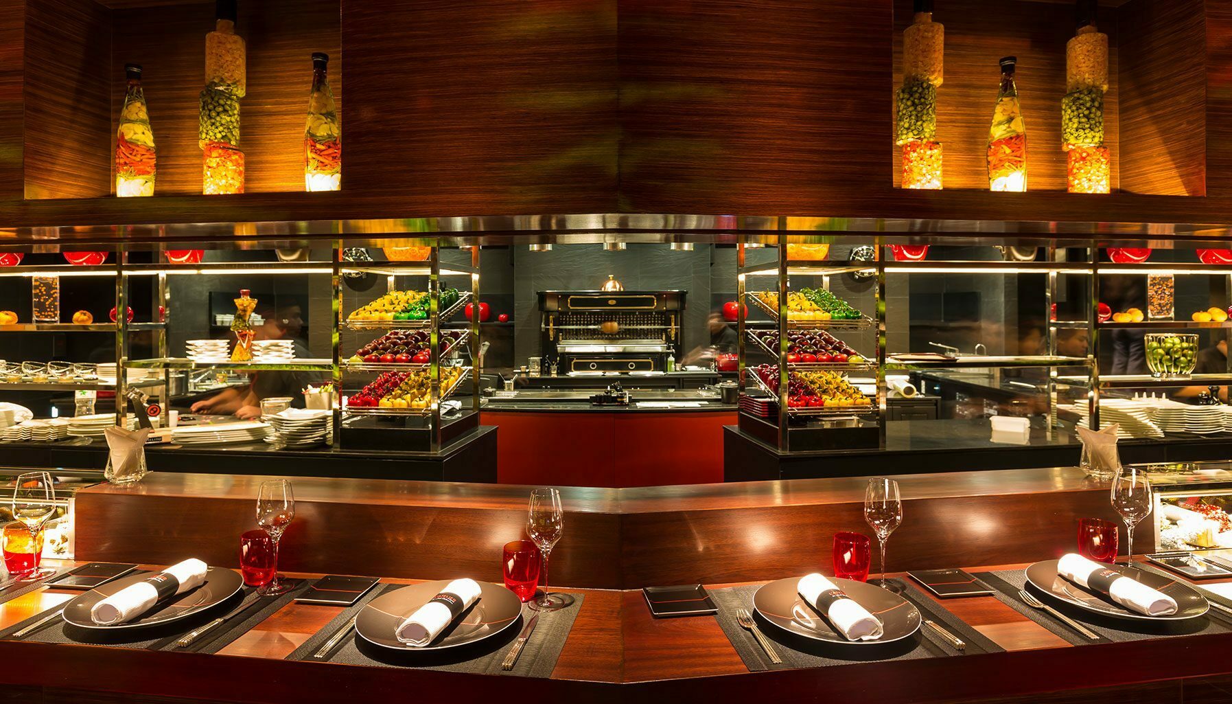 Every detail was carefully thought about by Robuchon himself – from the vanilla scent sprayed before service, the beautiful dinnerware from Bernardaud Limoges, the sliding doors hiding the blazing lights of the back kitchen and the careful set-up of the open kitchen using only induction and electric equipment to the black uniforms of the chefs and staff.