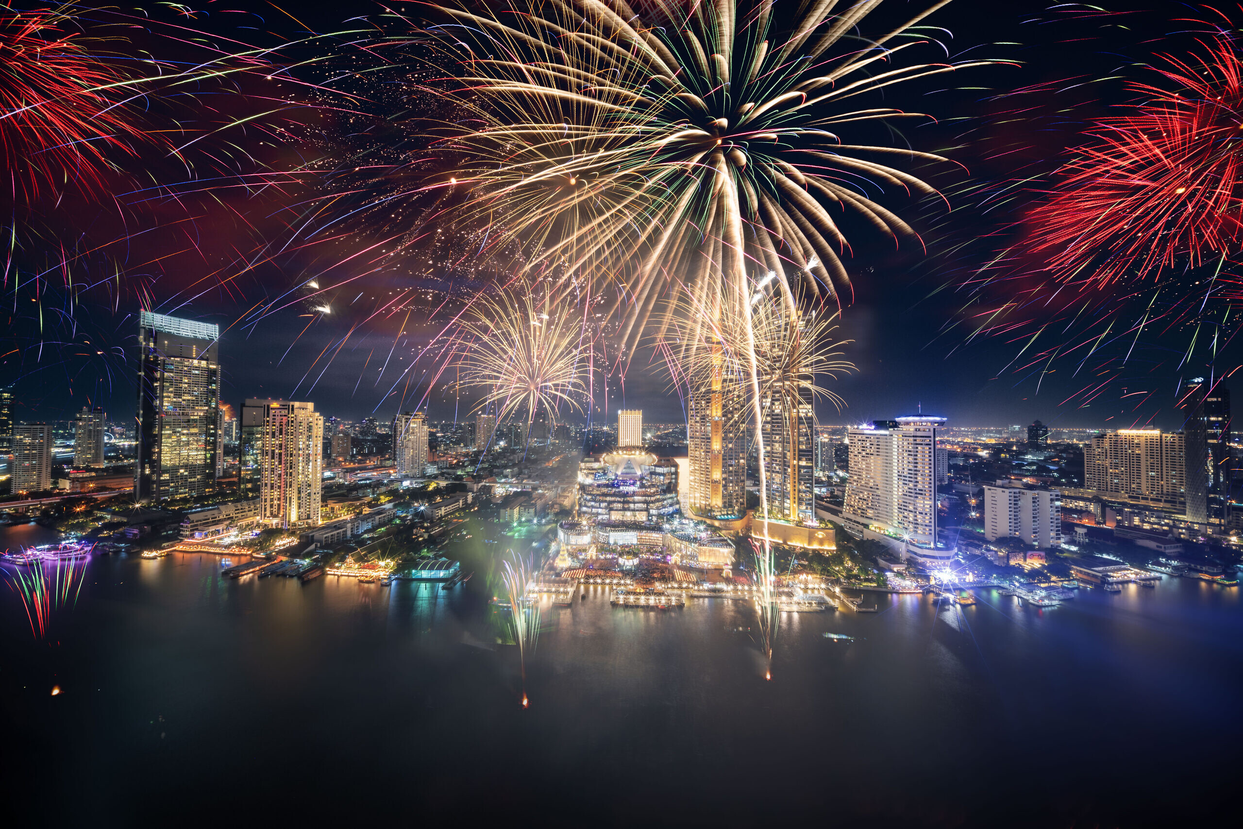 Get ready for a spectacular global fireworks celebration like no other! And be amazed by the eco-friendly fireworks display over the most beautiful curve of the Chao Phraya River, stretching over 1,400 meters and visible from a radius of more than 5 kilometers. This year’s event includes special technical innovations, creating a fresh perspective for the countdown night fireworks. Witness vibrant displays with new pastel and golden hues, along with diverse and eye-catching shapes, all set against the stunning backdrop of the Chao Phraya River’s iconic curve.