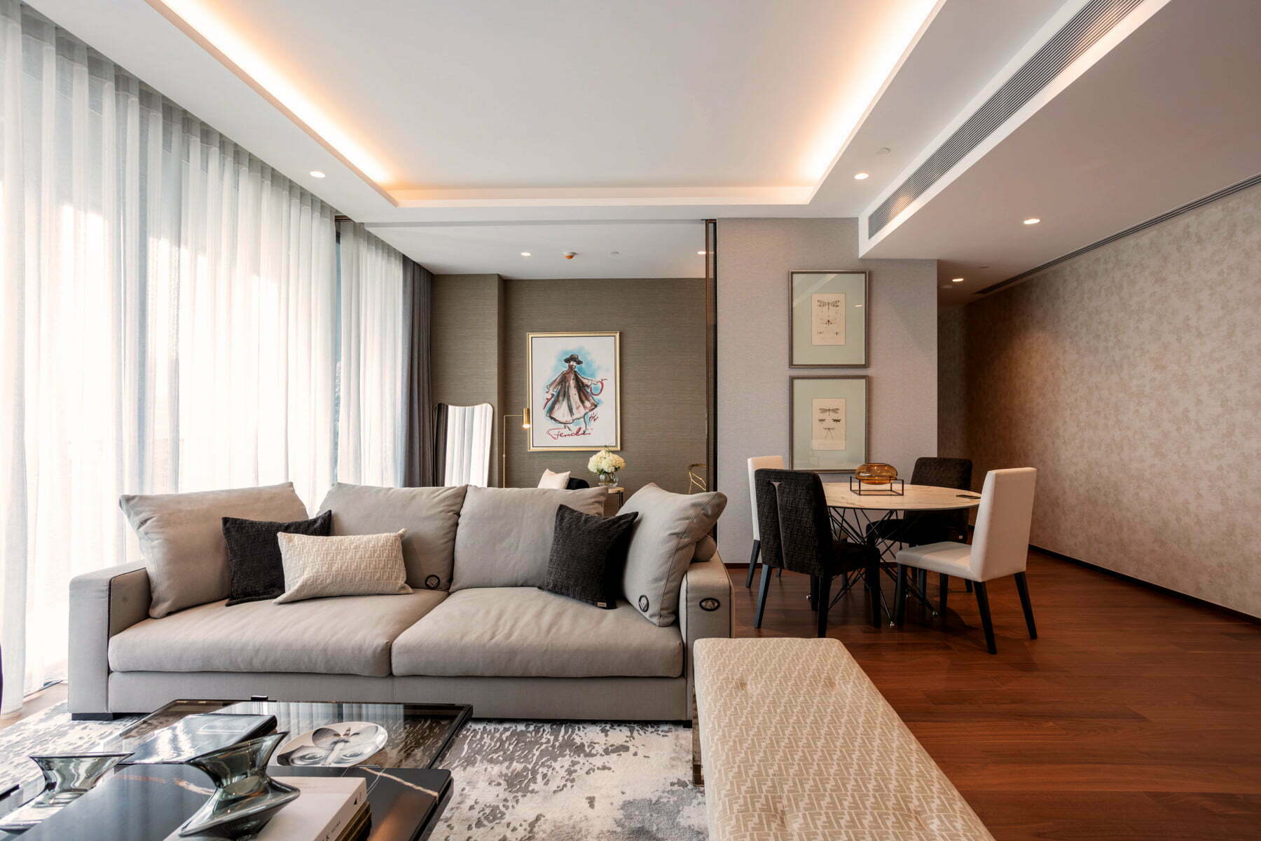 In addition to the FENDI Casa inspired show unit, The Estelle Phrom Phong offers other two show units with distinct sophistication to cater the different demands of design and floorplan. One is a 2-bedroom corner suite with private lift lobby that emphasizes on maximizing the spacious living and kitchen area with the beautifully and fully fitted kitchen island as a grand center of the room, adding up for the total unit size of 143.5 square meters. The suite seamlessly suits for daily family gathering and dining while having extra space in the same area to relax and unwind. Another unit is a simplex 1-bedroom suite, highlighting on the functionality built in modern decors with the highest and sophisticated specifications. Every inch has been specially craft to feel relaxed at home in the utmost comfort.