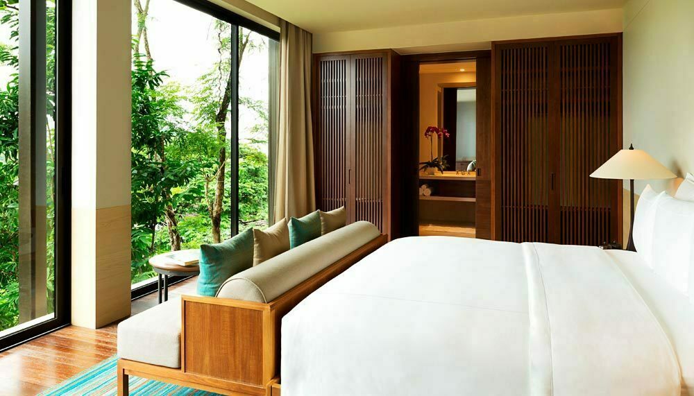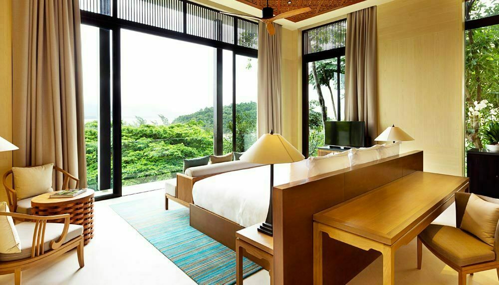 This level of the villa has been engineered to give maximum impact; its three wings flank the left and right, so the first thing one sees upon entering is the infinity pool overlooking the rest of the resort dotting the forest below and the Andaman Sea beyond.