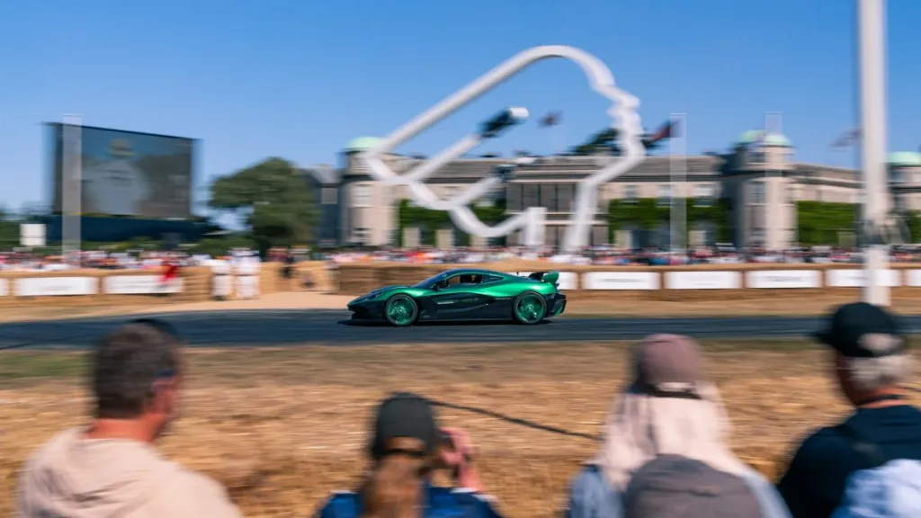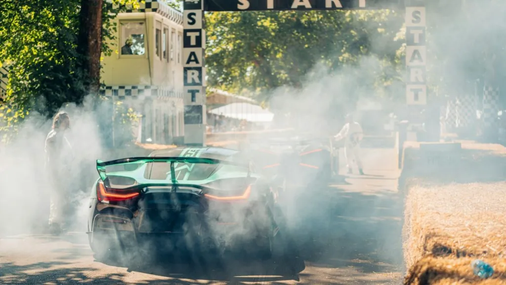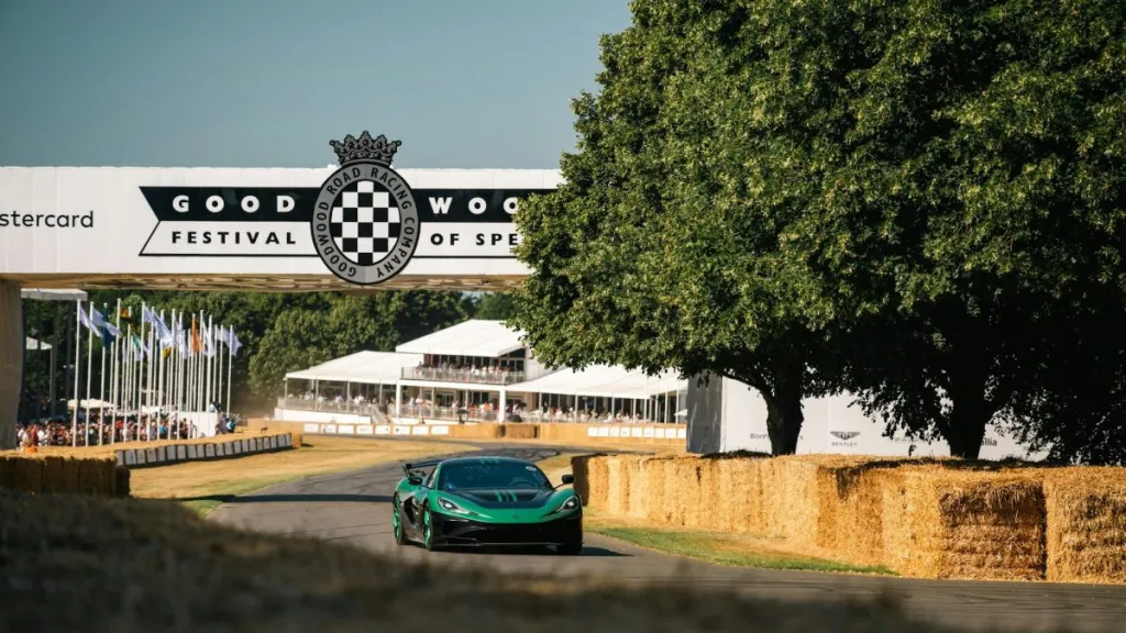 Goodwood changed its regulations so our timed run isn’t for official standings, which means more fun can be had. Zrnčević twists a dial, engaging drift mode, a setting that channels 100 percent of that four-digit power to the rear wheels while disabling the stability control. He adjusts the dampers to medium; the track’s bumpy surface demands maximum grip over outright stiffness. The Nevera R begins to hum, its cooling system cycling up like a prizefighter’s breathing before the bell.