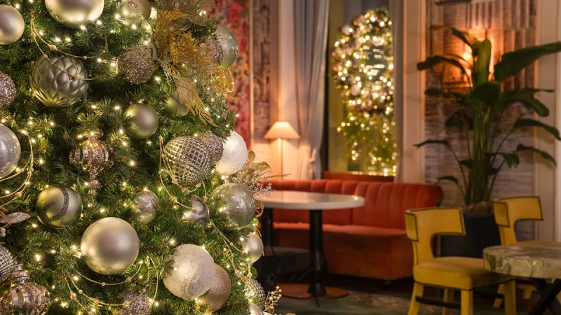 Only a few years old, this hotel embodies classic New York, especially in the Lounge on Pearl, where the afternoon tea is served. Tea attendees can revel in the beauty of the muraled walls and the Christmas tree’s pearl, sage, gold, and rose gold ornament color palette adorned with shimmering garlands and delicate glass baubles. In addition to the tea, guests can pick up a rich, velvety cocoa at the Hot Cocoa Trolley Cart. The hotel also offers a host of family-friendly experiences this season, from Gingerbread Cookie Decorating Kits suitable for all ages to the enchanting “Here Comes Santa Claus" experience.