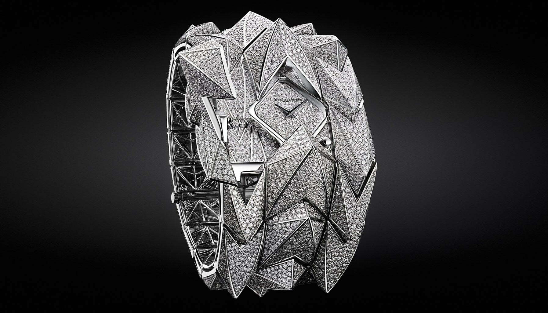 Following the success of last year’s Diamond Punk, Audemars Piguet has once again unveiled a diamond-encrusted statement watch for its female clients. Diamond Fury has a relatively irregular shape compared to the boxy Punk, and is a smoother operator – the mechanism that hides the watch face under a diamond-set lid has been changed from last year’s slightly awkward slide-over one to a hinged segment that pops open. Diamond Fury is crafted from 18k white gold and is set with 4,635 brilliant diamonds on its case and bracelet, and 206 brilliant diamonds on its dial.