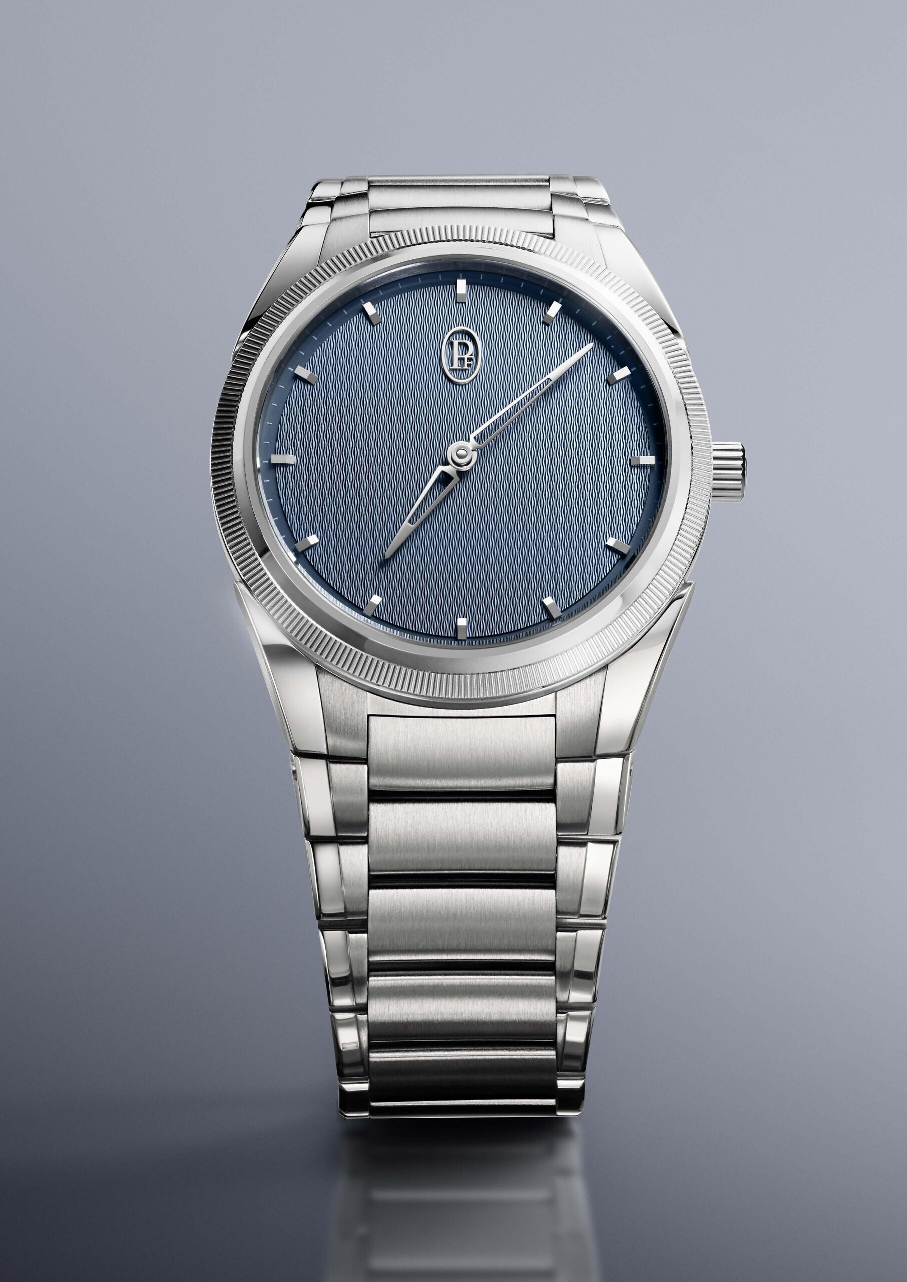 The “Stone Blue" dial of the Tonda PF 36MM, used for the first time in a configuration of hours, minutes, illustrates the Maison’s dedication to sophisticated nuances. Inspired by Le Corbusier’s architectural palette, this vibrant blue has become a chromatic signature, consolidating the Tonda PF collection’s aesthetic identity. Evoking the clarity of a morning sky or the soothing reflections of calm waters, this blue embodies an intimate connection with nature—a vital source of inspiration in contemporary luxury. Associated with contemplation and creativity, it also symbolizes a universal, timeless aesthetic deeply rooted in a quest for perfection.