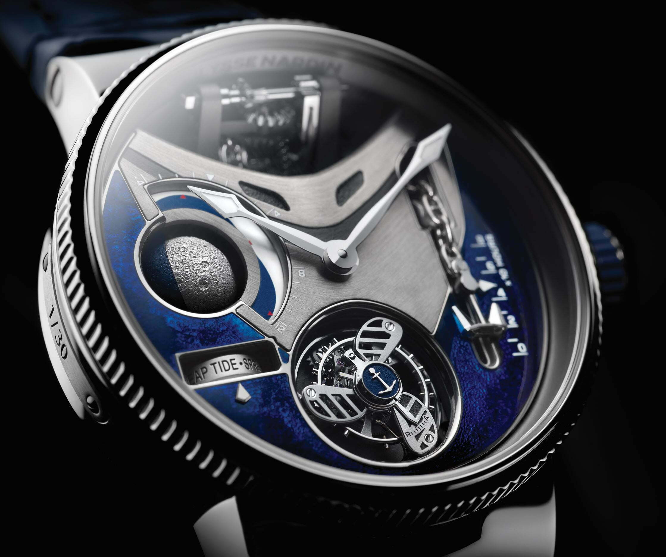 ไม่ใช่เรื่องแปลกใหม่สำหรับนาฬิกาที่สามารถเชื่อมโยงกับการแล่นเรือยอทช์ นาฬิการุ่นนี้มีทัวบิญองรูปร่างเหมือนใบพัดของเครื่องยนต์ สามารถแสดงรูปดวงจันทร์บ่งบอกถึงเวลาน้ำขึ้นน้ำลงได้แบบ 3 มิติ และการสำรองพลังงานที่ได้รับการจดสิทธิบัตรซึ่งระบุด้วยกระจกกว้านและสมอเรือที่ใช้งานได้ 80 ชั่วโมงก่อนที่จะต้องหมุนกลับ