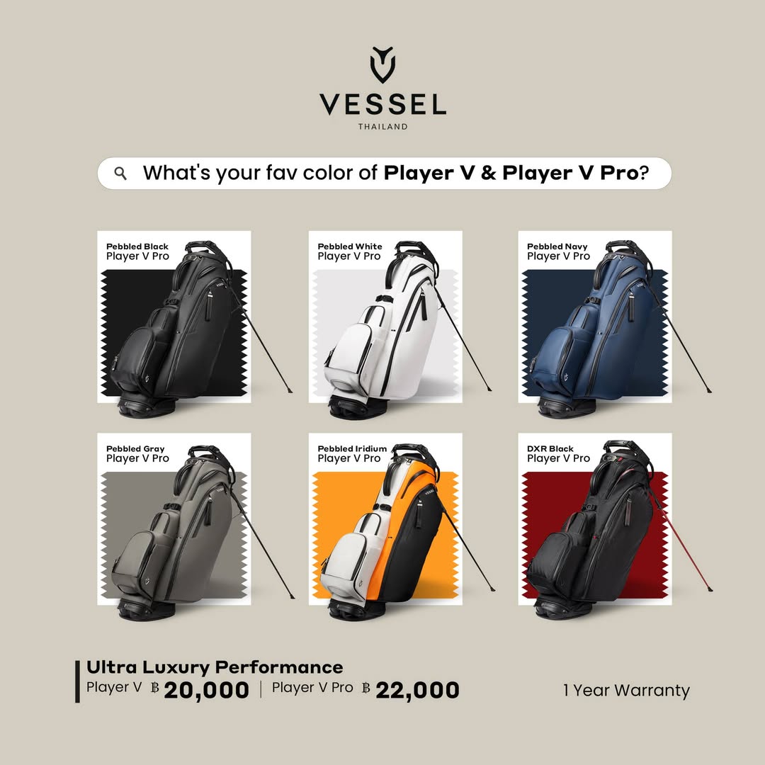 Player V Pro คือนวัตกรรมล่าสุดของ VESSEL ที่ผสมผสานประสิทธิภาพเข้ากับความหรูหรา ถุงกอล์ฟรุ่นนี้มีพื้นที่เก็บของที่เพิ่มขึ้น พร้อมยังได้คุณสมบัติที่นักกอล์ฟมืออาชีพเลือกใช้ ด้วยรายละเอียดที่ทันสมัย ซึ่งได้รับการออกแบบมาเพื่อนักกอล์ฟที่อยากได้ทั้งฟังก์ชันการใช้งานและสไตล์ไปพร้อมกัน ด้วยจุดเด้นนี้ Player V Pro จึงเป็นที่ไว้วางใจของนักกอล์ฟทั่วโลก รวมถึงนักกอล์ฟมืออาชีพ เพราะให้การผสมผสานที่ลงตัวระหว่างความความสมบูรณ์แบบด้านการใช้งานและความหรูหรา