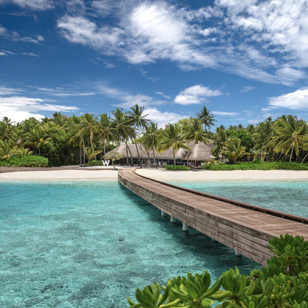 Located 25 minutes in North Ari Atoll, W Maldives is a private island playground for those seeking exclusivity and appreciation of a lifestyle brand that flirt with one’s senses, and home to one of the best house reefs in the Maldives. Secluded yeare oftencoming, this snorkeling paradise invites you to take a leisurely stroll on its white-sand beaches, feel the freshness of the ocean breeze as it lightly kisses your face, and explore the turquoise lagoon and vibrant reefs right off the beach, as opposed to the boat rides often required elsewhere. The vibe here is younger than at other resorts, so water sports and other features of dynamic movement by the beach are encouraged.