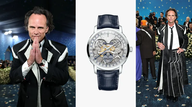 White Lotus star, Walton Goggins showed up in a fearless Thom Browne suit skirt and an equally fearless timepiece to match. On his wrist, he wore an openface 41 mm Vacheron Constantin Traditionelle Complete Calendar in platinum. It’s the kind of watch that would be right at home on a White Lotus character, but perhaps more in line with Jason Isaacs’s character Timothy Ratliff than Goggins’ Rick Hatchett. It seemed like all the cool guys wore Thom Browne tonight, but it appears only one fella got to wear Vacheron, and a very excellent one at that.