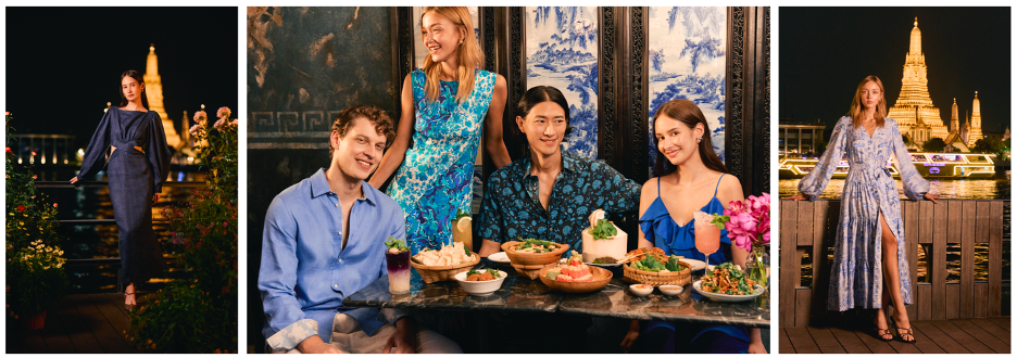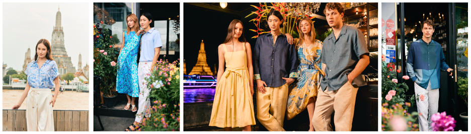 The campaign, set against the timeless charm of Tha Tien – with its heritage shop fronts and temple spires – serves as a gentle reminder: style doesn’t need to shout to be heard. Flanked by the Chao Phraya River and facing the majestic Wat Arun, the area tells a story of old Bangkok, of temples and trade, of slow mornings and enduring beauty. From the glow of daylight to the quiet drama of twilight and the mystery of deepening night, the city reveals itself in layers. It’s the perfect canvas for a collection that reimagines fashion and resort wear through a Thai lens – designed to move effortlessly from day to night. These storied destinations become part of Jim Thompson’s quiet yet powerful mission of elevating Thailand on the world stage.