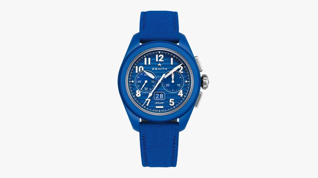 When Georges Favre-Jacot looked up at the night sky in the mid-19th century, he was inspired by the stars to call his fledgling brand “Zenith," indicating his appetite for reaching the highest echelons of chronometric perfection. 160 years later, his brand has indeed scaled the watch world heights. In celebration of this tremendous milestone, the Le Locke-based maison is releasing a series of blue ceramic versions of its most beloved modern collections. The Pilot Big Date Flyback, a recent addition to the brand’s oeuvre that was introduced in 2023, now looks more sporting than ever in its night sky-themed livery.